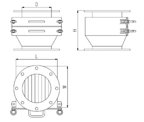 | 注:1. “D"表示雙層磁格柵;2.定購(gòu)時(shí)需提供進(jìn)岀料口形式、尺寸;管道壓力;工作溫度;安裝高度限值;磁場(chǎng)強(qiáng)度;物料特性,物料名稱,顆粒度,流動(dòng)性;磁格柵層數(shù)等參數(shù)。 | ||||