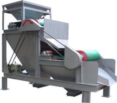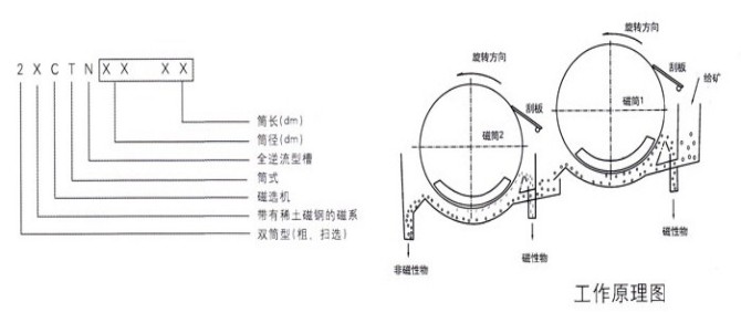 該類設(shè)備利用永磁磁系所產(chǎn)生的磁力,將礦漿中磁性礦物吸引到圓筒表面上來,并隨著圓筒一起旋轉(zhuǎn),待脫離磁場作用后在重力、(刮板)作用下排出機(jī)外,而非磁性物質(zhì)從尾礦口排除,完成分選作用。