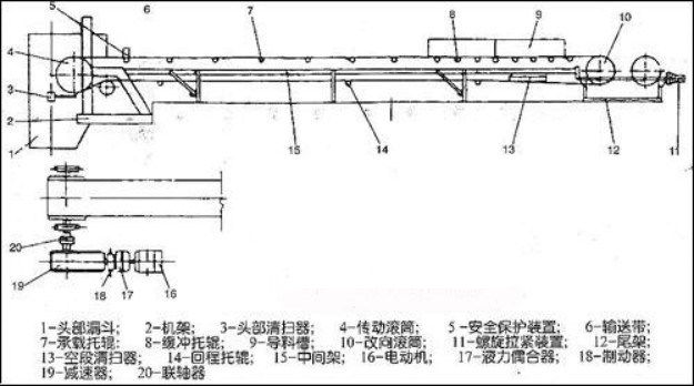 3、TD75型帶式輸送機(jī)所選用的輸送帶有普通橡膠帶和塑料帶兩種。適用工作環(huán)境溫度在-15°~+40°之間。輸送具有酸性、堿性、油類物質(zhì)和有機(jī)溶劑等成份的物料時(shí),需采用耐油性、耐酸堿的橡膠帶和塑料帶。